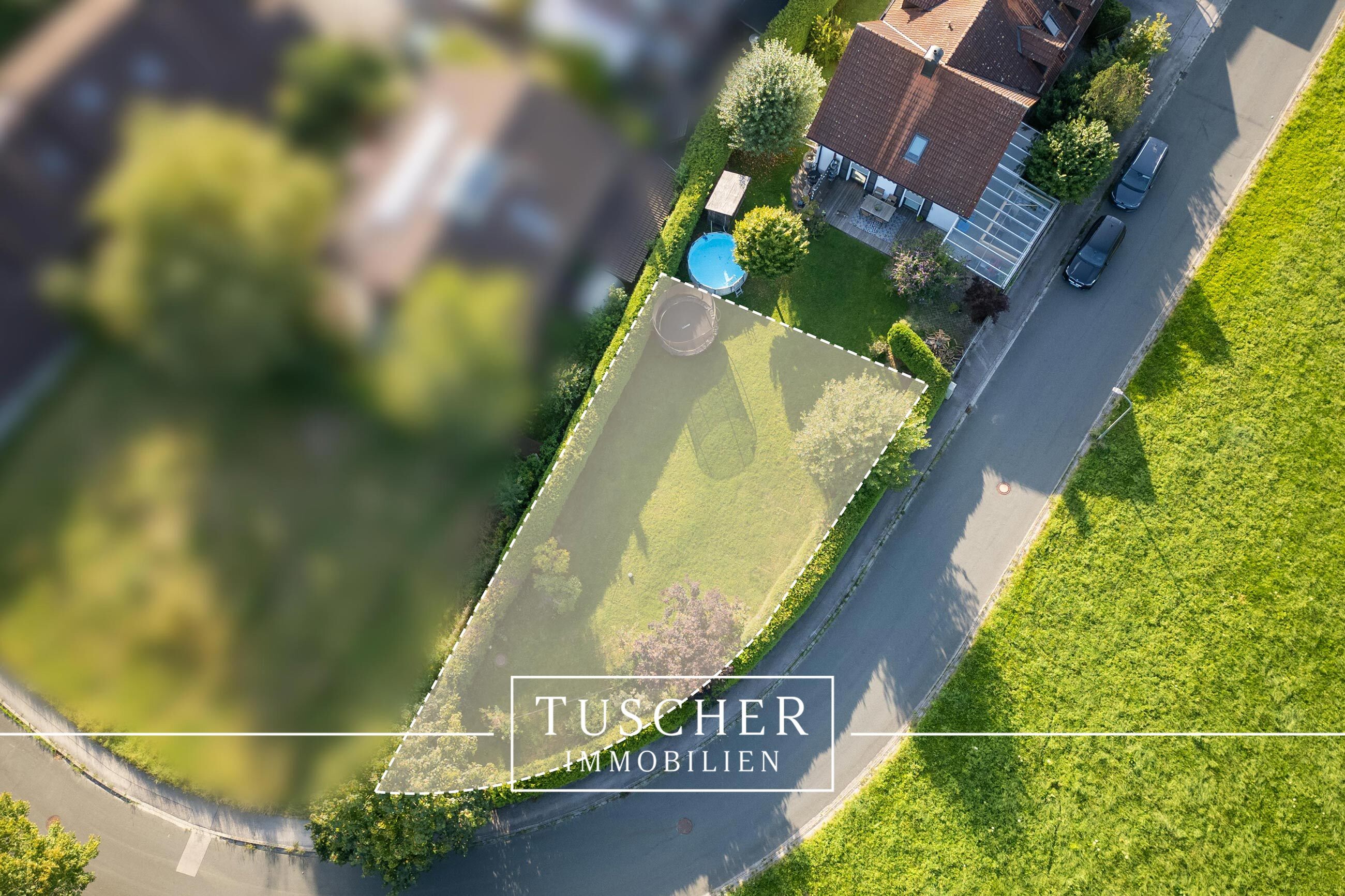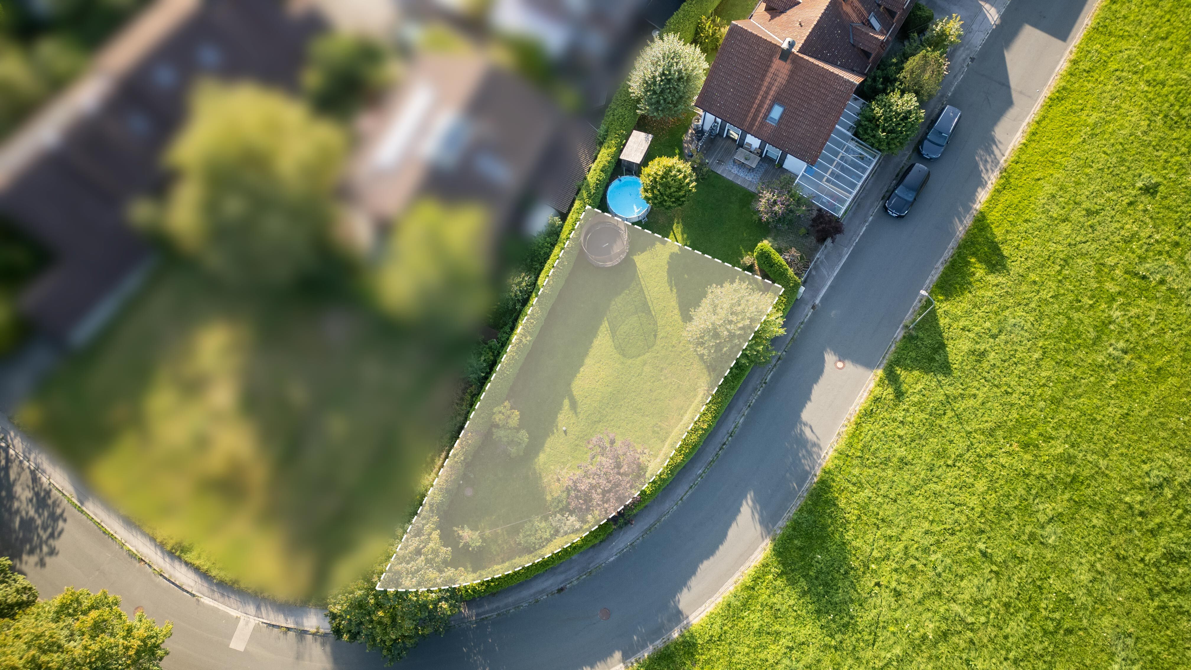 Das Grundstück hat einen spitzwinkligen, dreieckigen Zuschnitt und liegt an einer Anliegerstraße.