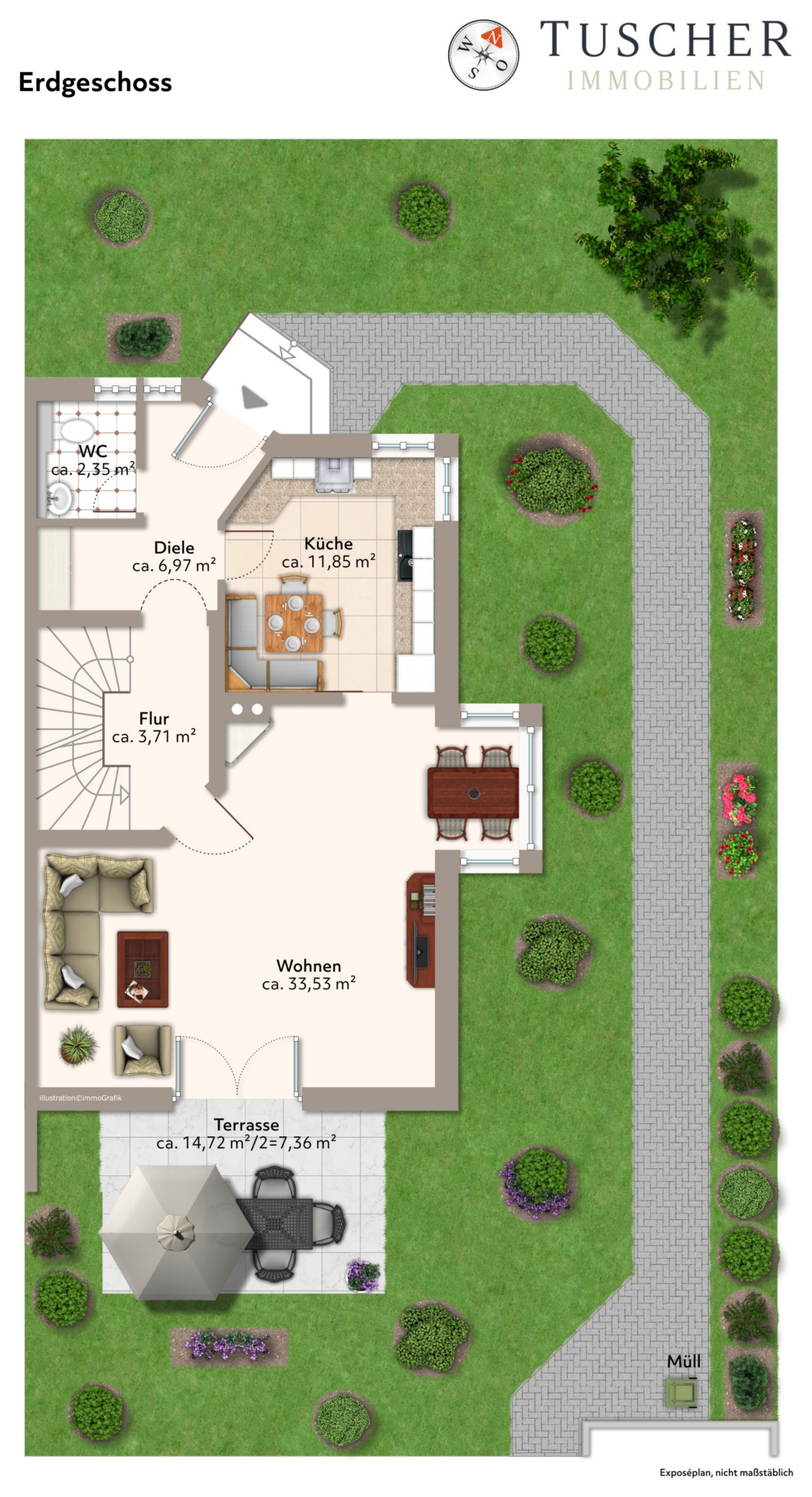 Die Käuferprovision beträgt 3,57 % inkl. gesetzl. MwSt. vom notariellen Kaufpreis!